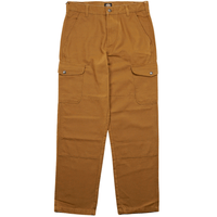 Fabric/Description: 12.5 oz. 100% duck canvas cargo pants with a relaxed fit, zipper fly, button closure, side cargo pockets, utility back pockets, double needle stitching throughout; triple needle stitching at key seams and woven Dickies label on the back right pocket