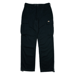 Fabric/Description: 8.25 oz. ripstop, 65% Cotton / 30% Polyester / 5% Elastane (LYCRA® fiber) cargo pants, relaxed fit, snap button pocket closures, zipper fly, drawstring bottoms and woven Dickies label on the left cargo pocket