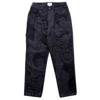 Fabric/Description: 100% heavyweight cotton canvas carpenter pants with a custom Kintaro print throughout and workwear labeling