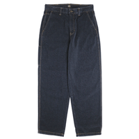 Fabric/Description: 13 oz. 100% cotton denim, loose fit, tack button closure, cell pocket, utility back pockets with logo label and double needle stitching