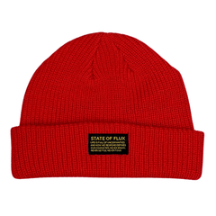 This short knitted Mantra beanie in red defines the State Of Flux mindset by offering low-profile warmth and clear everyday styling. When weather or situations shift, the beanie lets you show that outlook while keeping your head warm and unobtrusive. It solves the common problem of bulky hats that clash with layers by staying compact and easy to pair.