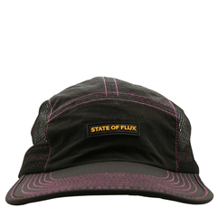 The SOF Active 5-Panel Cap in black is a lightweight, ultra-breathable outdoor hat designed for active use. Its water-resistant recycled nylon body and mesh panels help keep your head cool and dry during exercise.