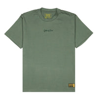 Fabric/Description: 8.2 oz 100% combed cotton heavy weight short-sleeve tee with embroidered design on the chest and woven label on bottom left. Tee fits slightly oversized with dropped shoulders. Preshrunk.